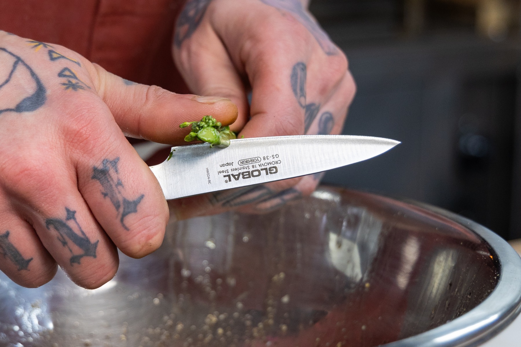 Unlike larger knives, the GS-38 is ideal for controlled, in-hand tasks—think peeling an orange or trimming a green bean right over the bowl.